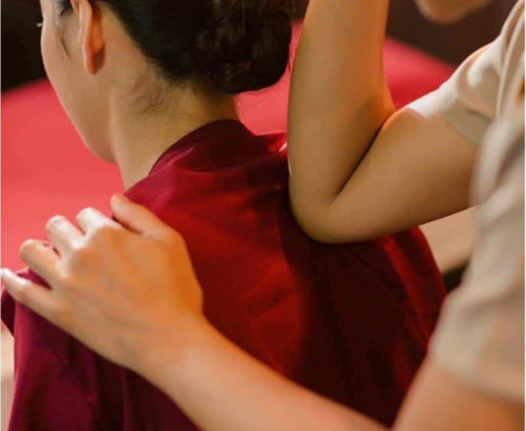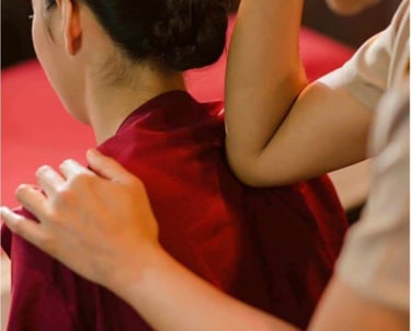 We specialise in authentic Thai massage a therapeutic solution that targets the root cause of pain, not just the symptoms. Unlike relaxation-focused massages, our ancient royal techniques use strategic light-to-deep pressure to restore balance. This comprehensive healing method for lasting relief and wellness that treats four core body systems as : 1. Tendon & Muscles 2. Fascia 3. Nerves 4. Joints & skeletal structure (+1) The spirit of mindfulness and loving-kindness that flows through each treatment.